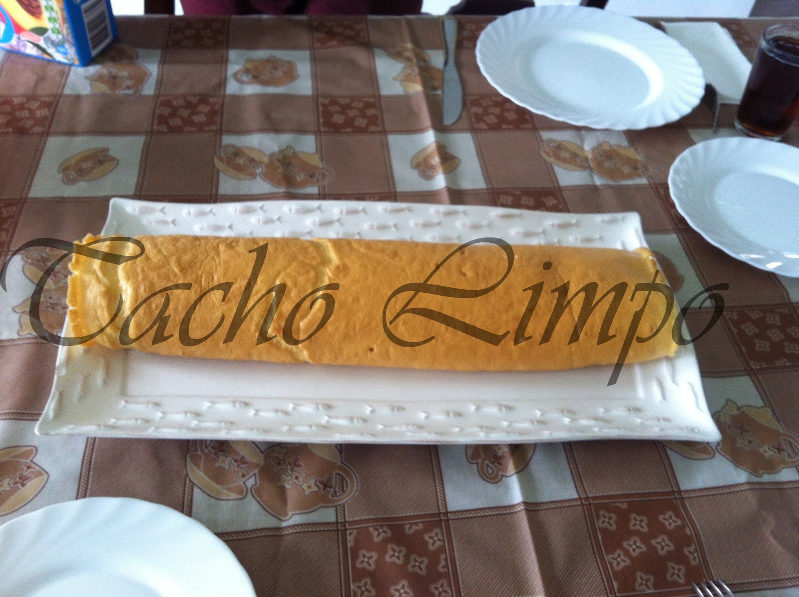 Quando a massa estiver cozida, retire do forno e desenforme par uma folha de papel vegetal. Espalhe o creme por toda a massa e enrole.