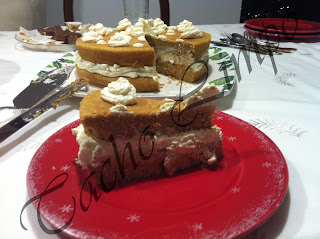 Coloque um dos bolos num prato, recheie com chantilly, cubra com o outro bolo e decore com chantilly. Leve ao frigorifico até à hora de servir.