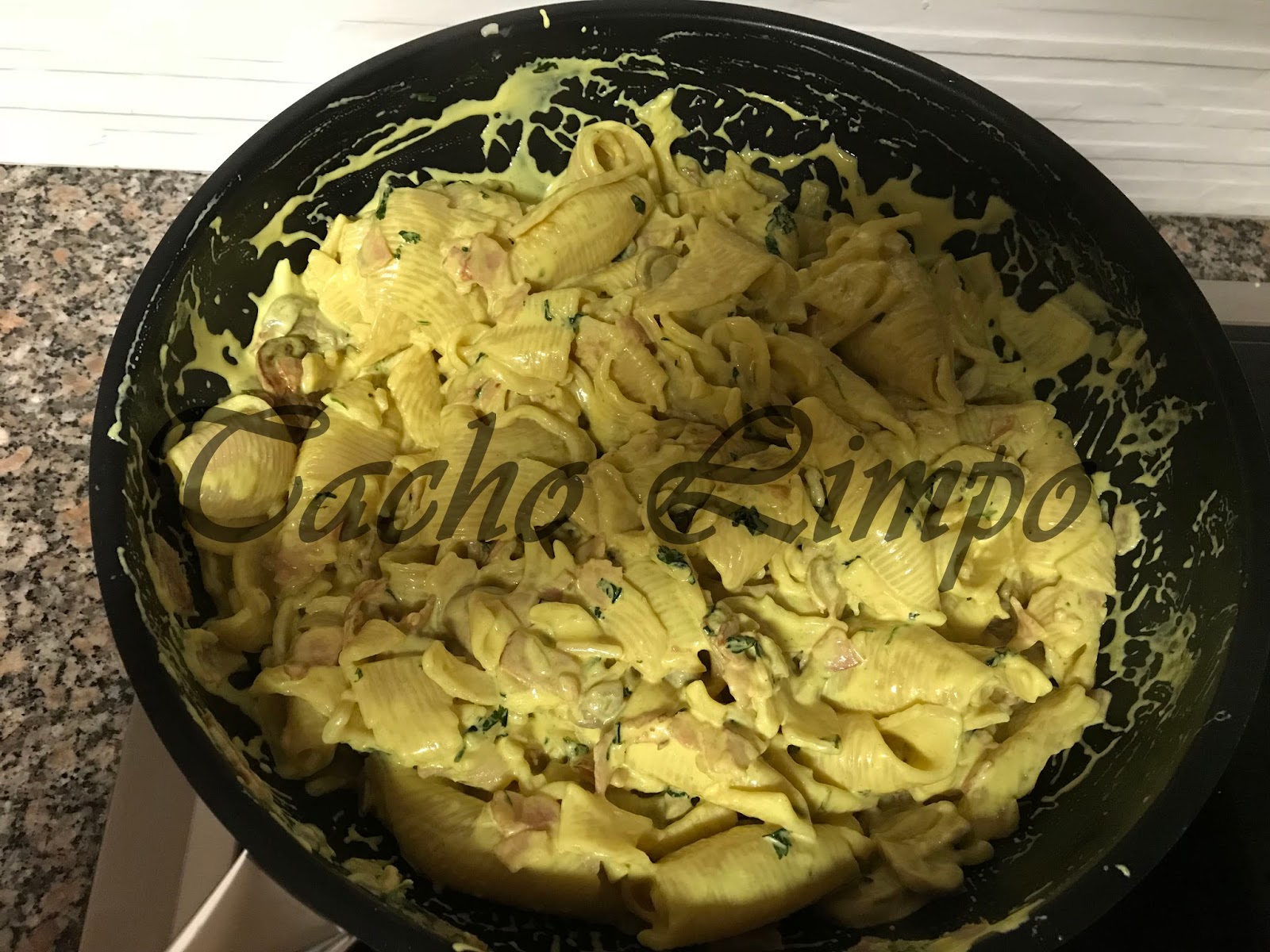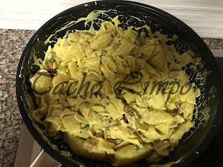 Conchas com bacon e caril