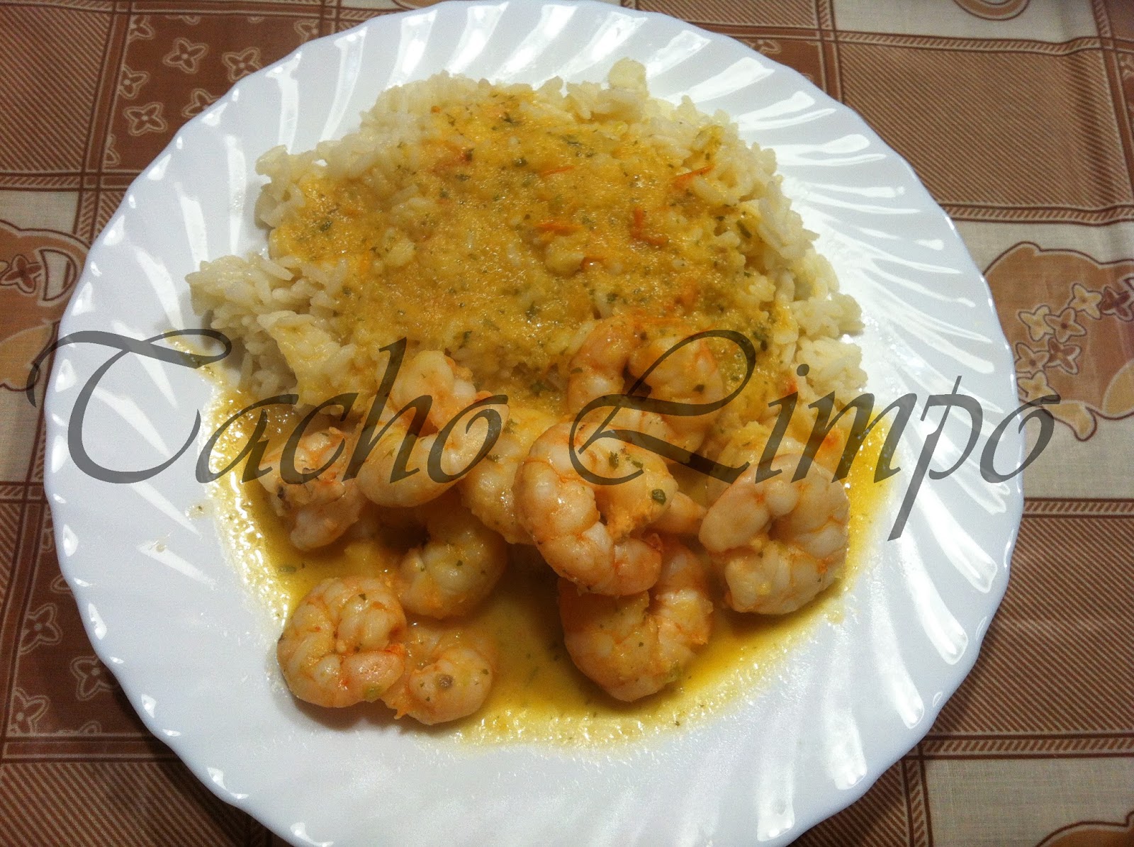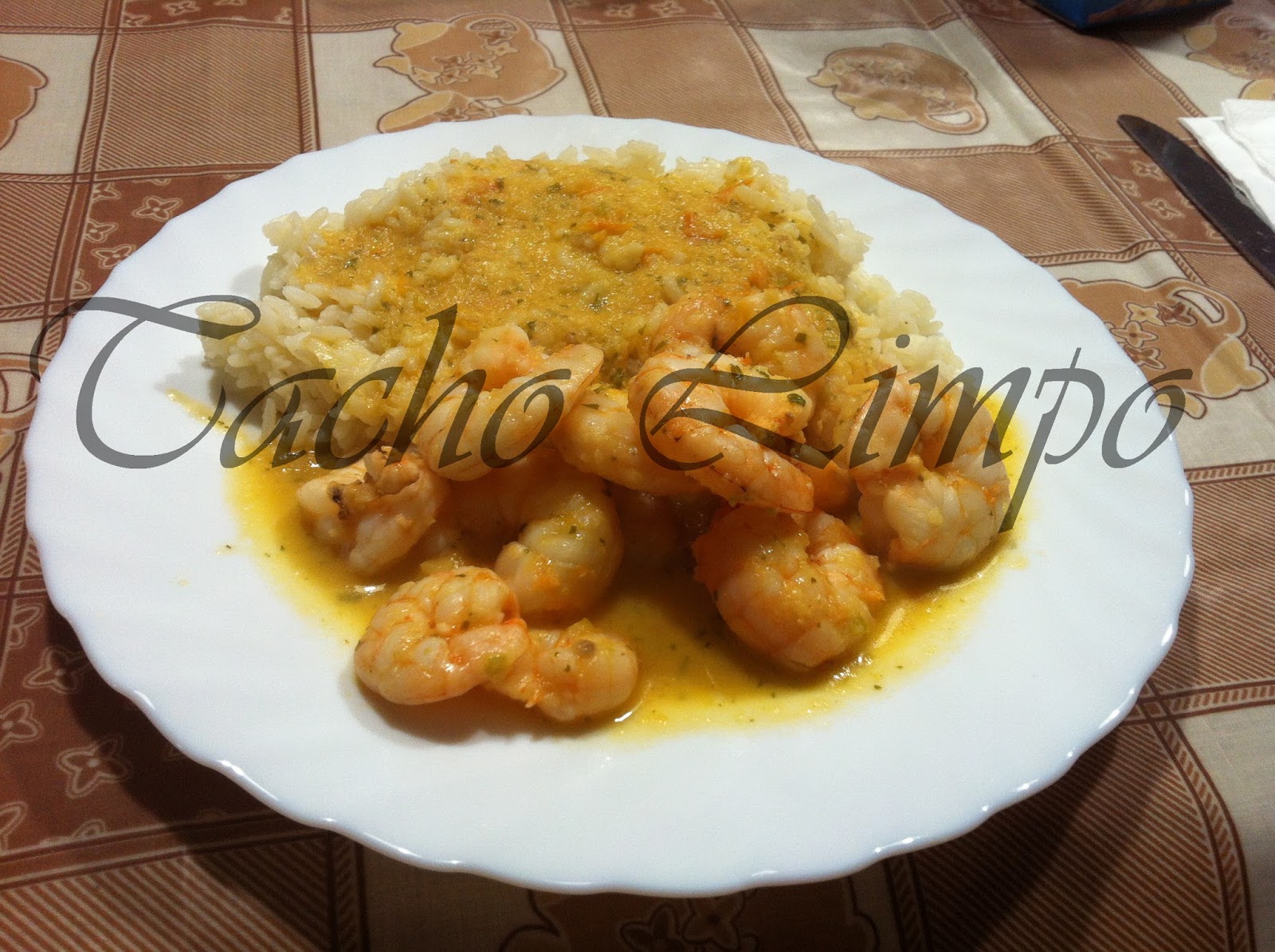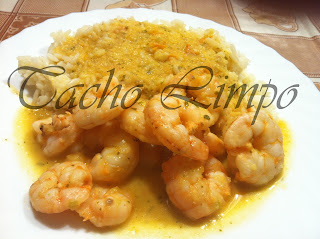 Comecemos por temperar o camarão com sal, os alhos e o sumo de limão.
