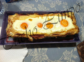 Por cima da carne distribua 5 fatias de queijo, em cima do queijo espalhe o paio, depois coloque as outras 5 fatias de queijo, por fim os ovos.